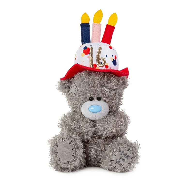 Cute Tatty Teddy is wearing a cupcake-shaped hat complete with candles and the caption ’16 today’ ; the bold, striking colour palette gives an on-trend twist to this lovely cuddly gift that’s sure to be adored by your daughter, son, granddaughter, grandson, sister, cousin, friend – or anyone celebrating their milestone 16th birthday. Every single Me to You bear is made with love, featuring hand-sewn patches and a cute blue nose. It’s no wonder Me to You has captured millions of hearts, all over the world. Perfect as a special gift, with an enduring sentiment that will be treasured for years to come!
