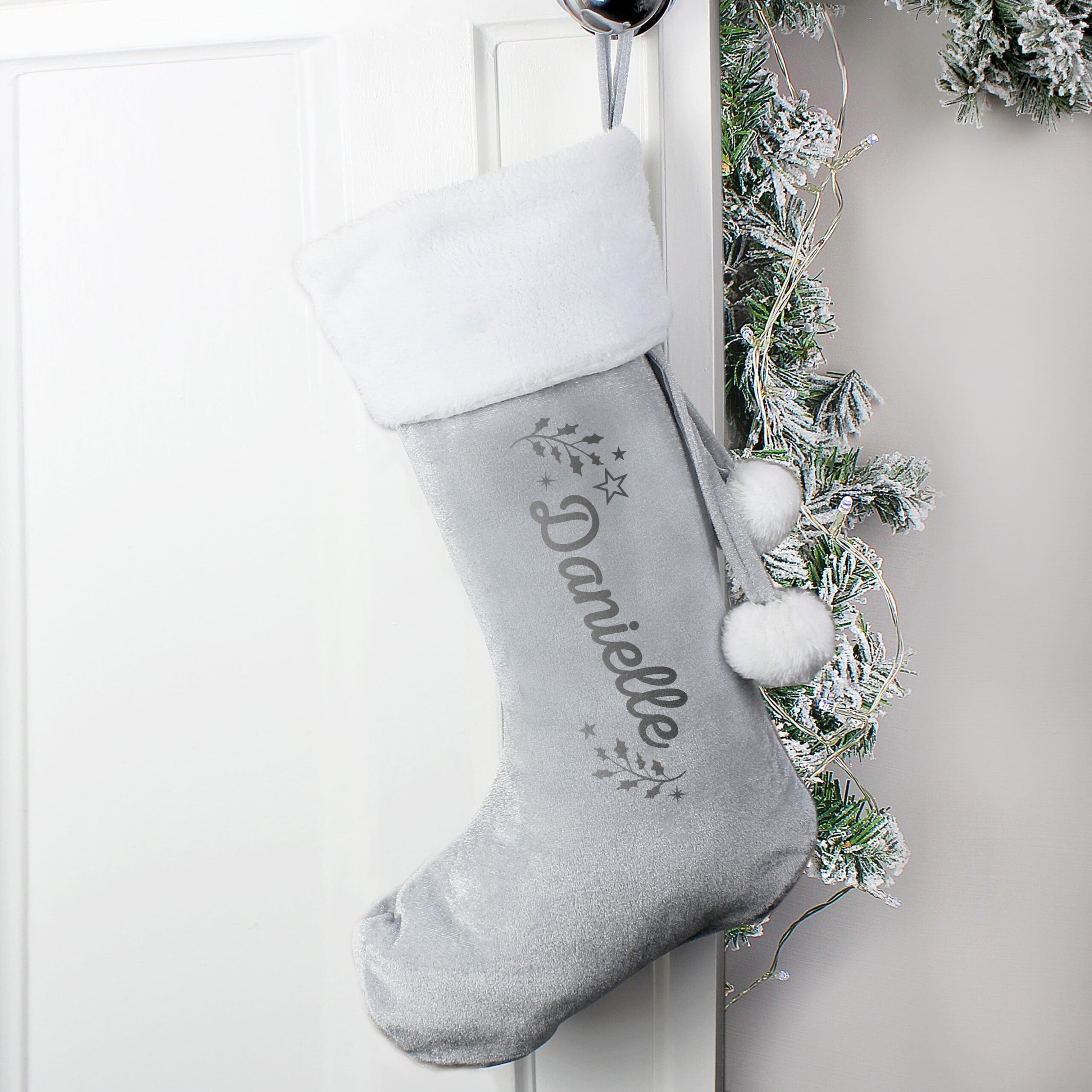 Our exquisite grey holly stocking is the perfect addition to your Christmas traditions. Hang it on the fireplace with joy and anticipation on Christmas Eve, as it awaits to be filled with delightful surprises! This stunning stocking can be personalised with a name of your choice, up to 12 characters in length. Every detail matters to us, so please ensure that the text is entered exactly as you desire, as it will appear on the stocking with utmost precision.