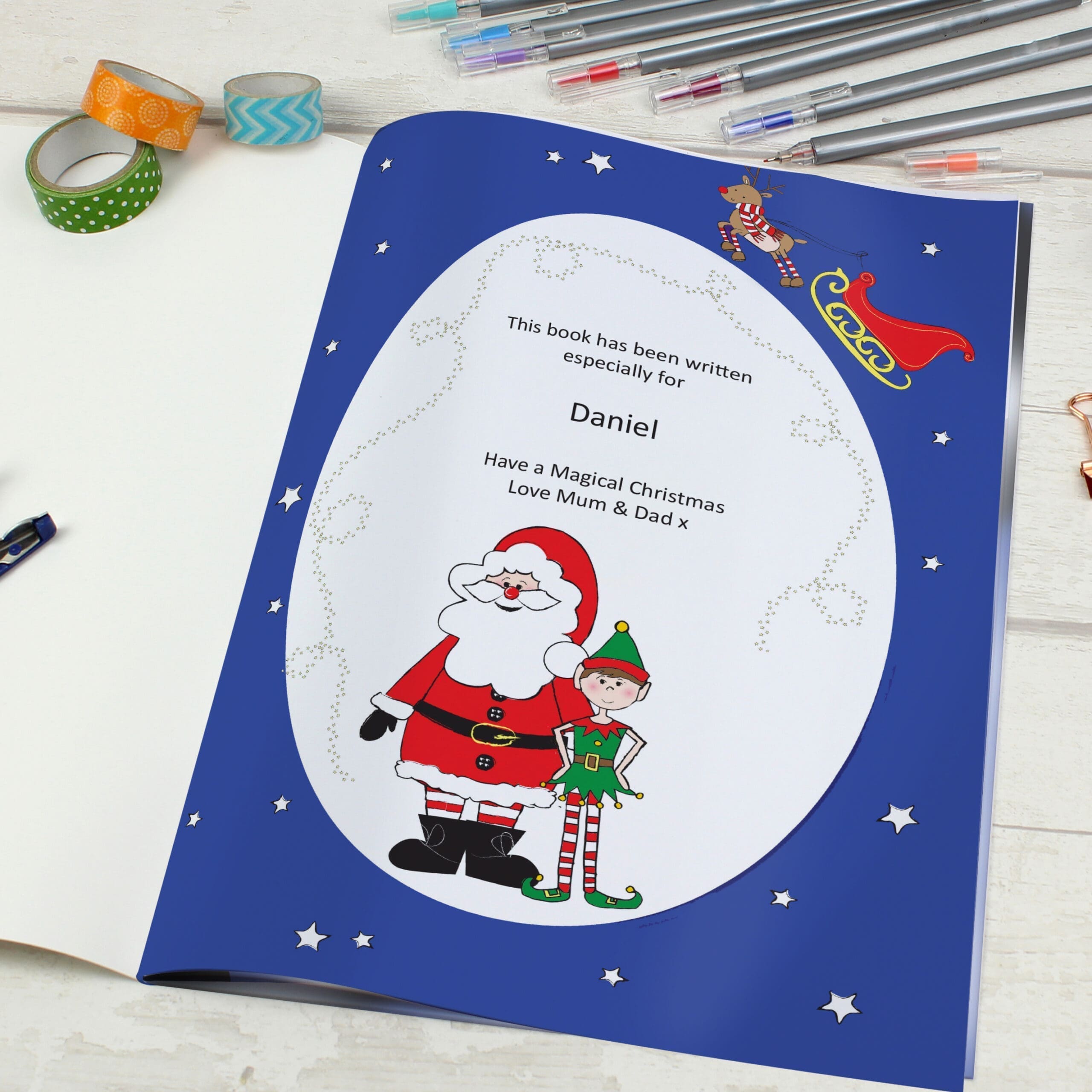 Personalise this special Elf Book with a name up to 12 characters on the front cover and throughout the book, and add a message on the first page. Celebrate Christmas with a unique and customised story that will captivate and delight.